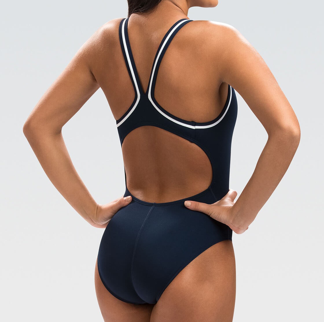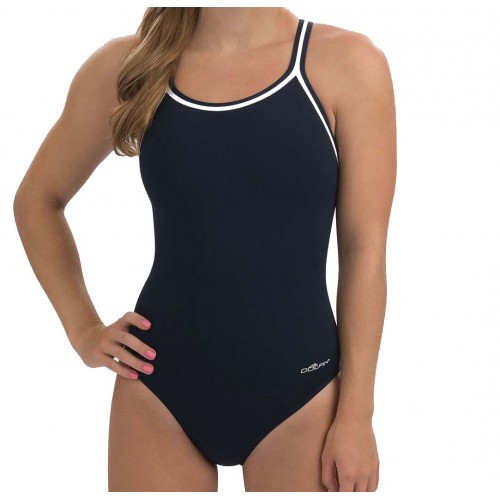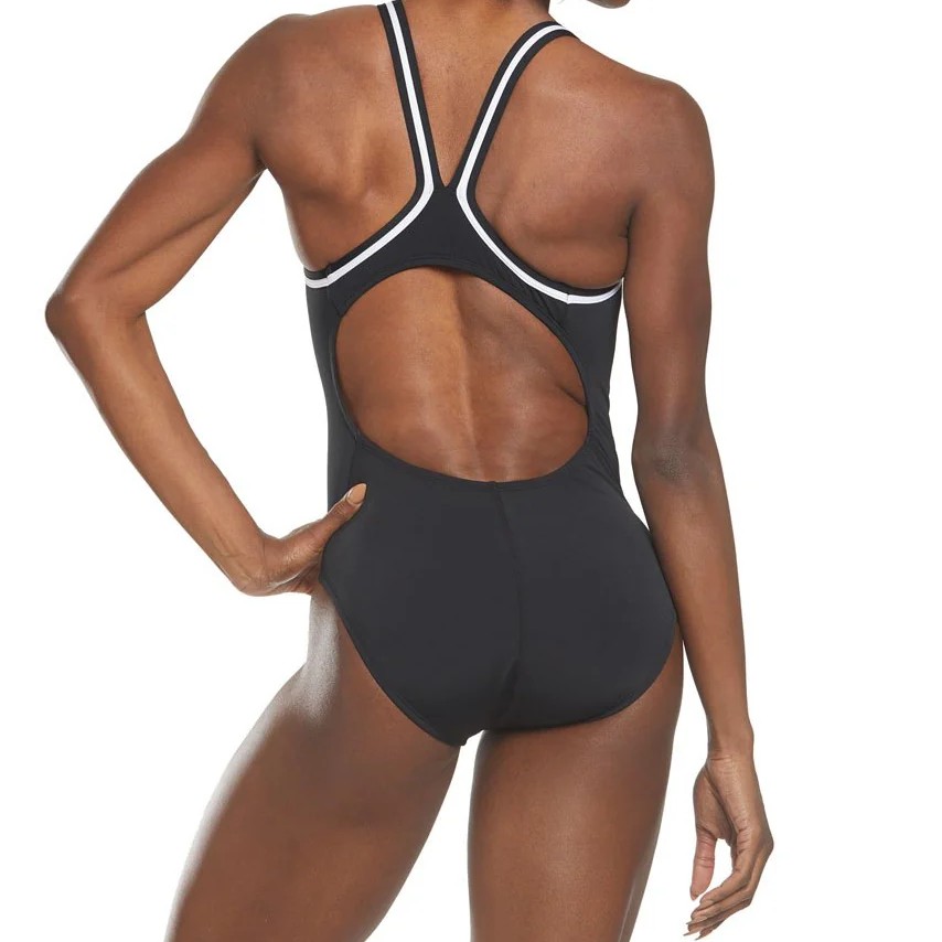 Engineered to fit tightly to the body to withstand long hours in the water, this swimsuit is made with chlorine-resistant fabric and color and shape retention features.