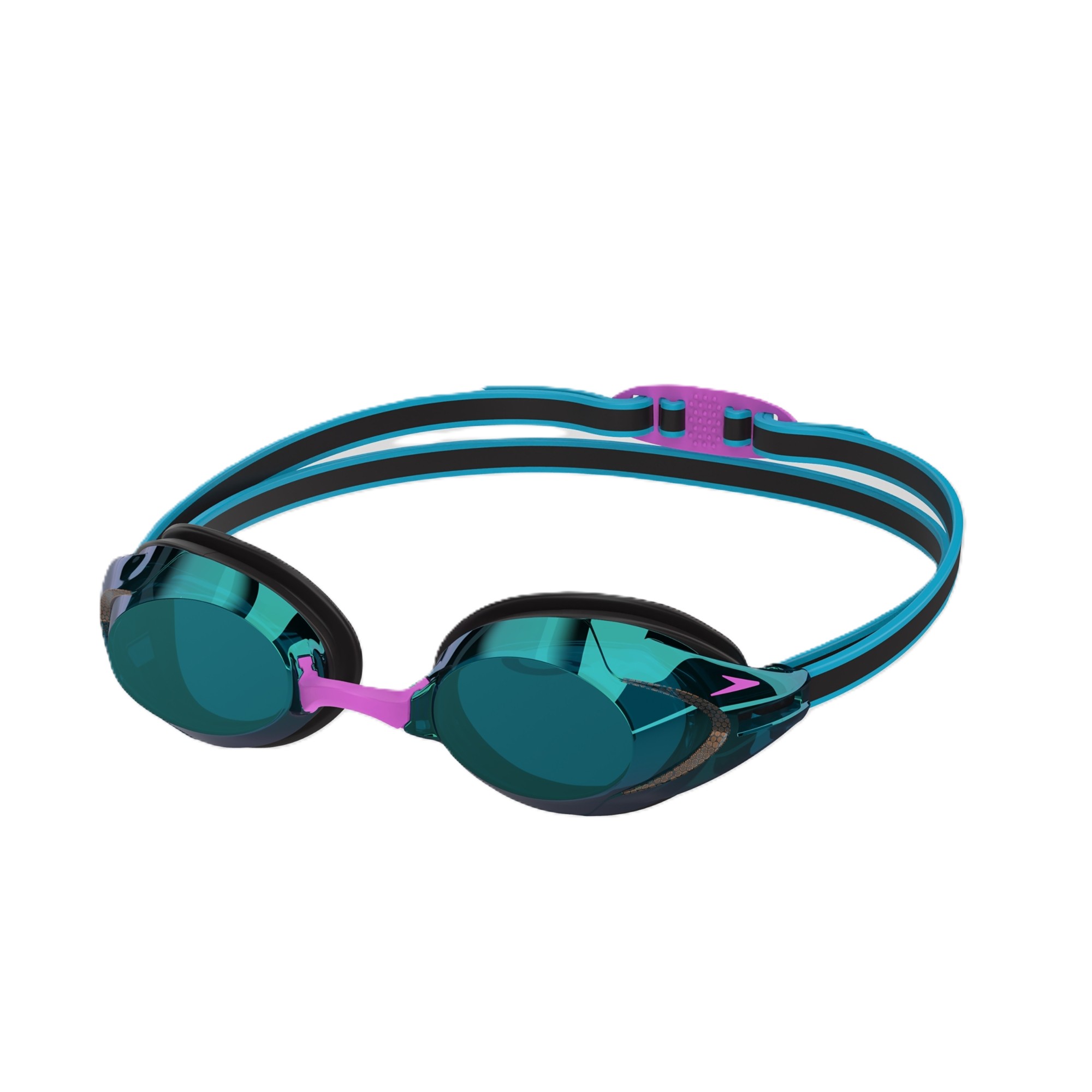 Enhance your swim sessions with the Speedo Vanquisher 3.0 Goggle, designed for greater vertical and peripheral vision through Ocular 360 lenses. Its Wider, Flatter strap, cushioned gaskets, and slide-and-lock nose bridge deliver all-day comfort, while anti-fog and UV protection keep you focused on every stroke.